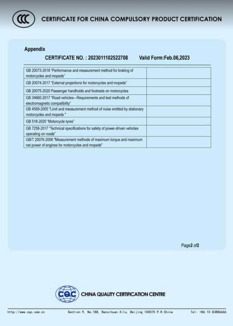 All of our electric mopeds comply with ISO9001, CE, and EEC standards, and we hold over 100 patents. Certifications for specific regions can be arranged based on customer needs.