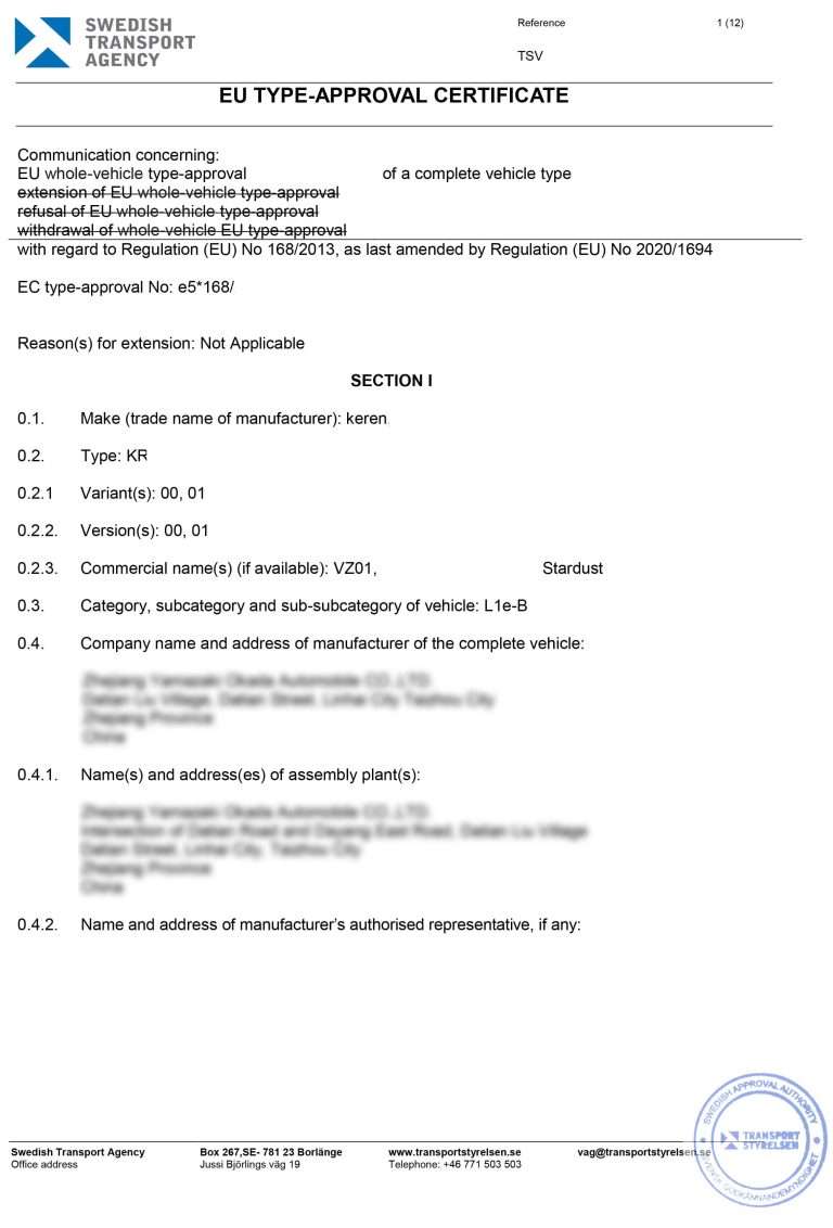 Authorizes our products for entry into the European market, proving road safety and regulatory compliance.
